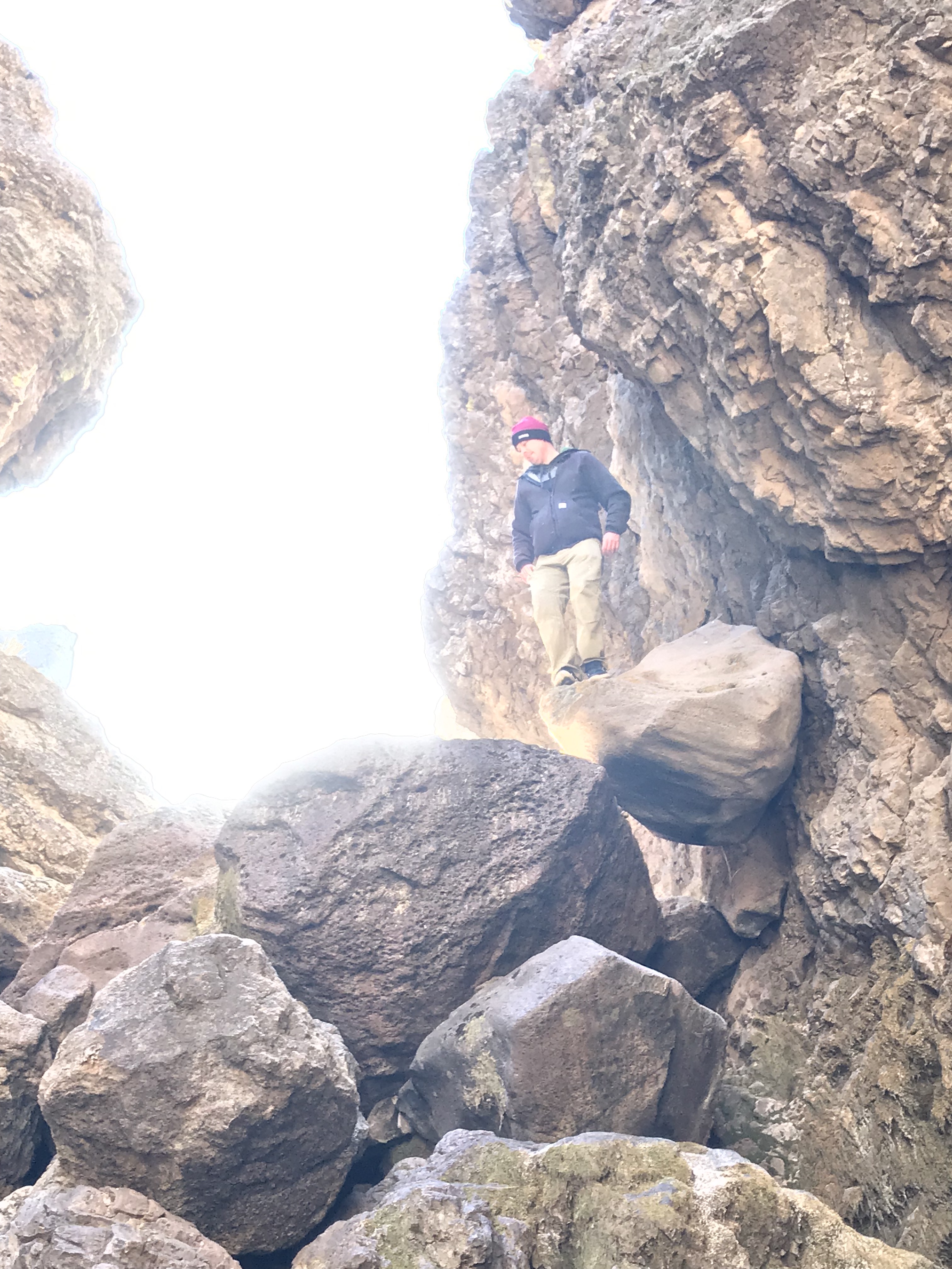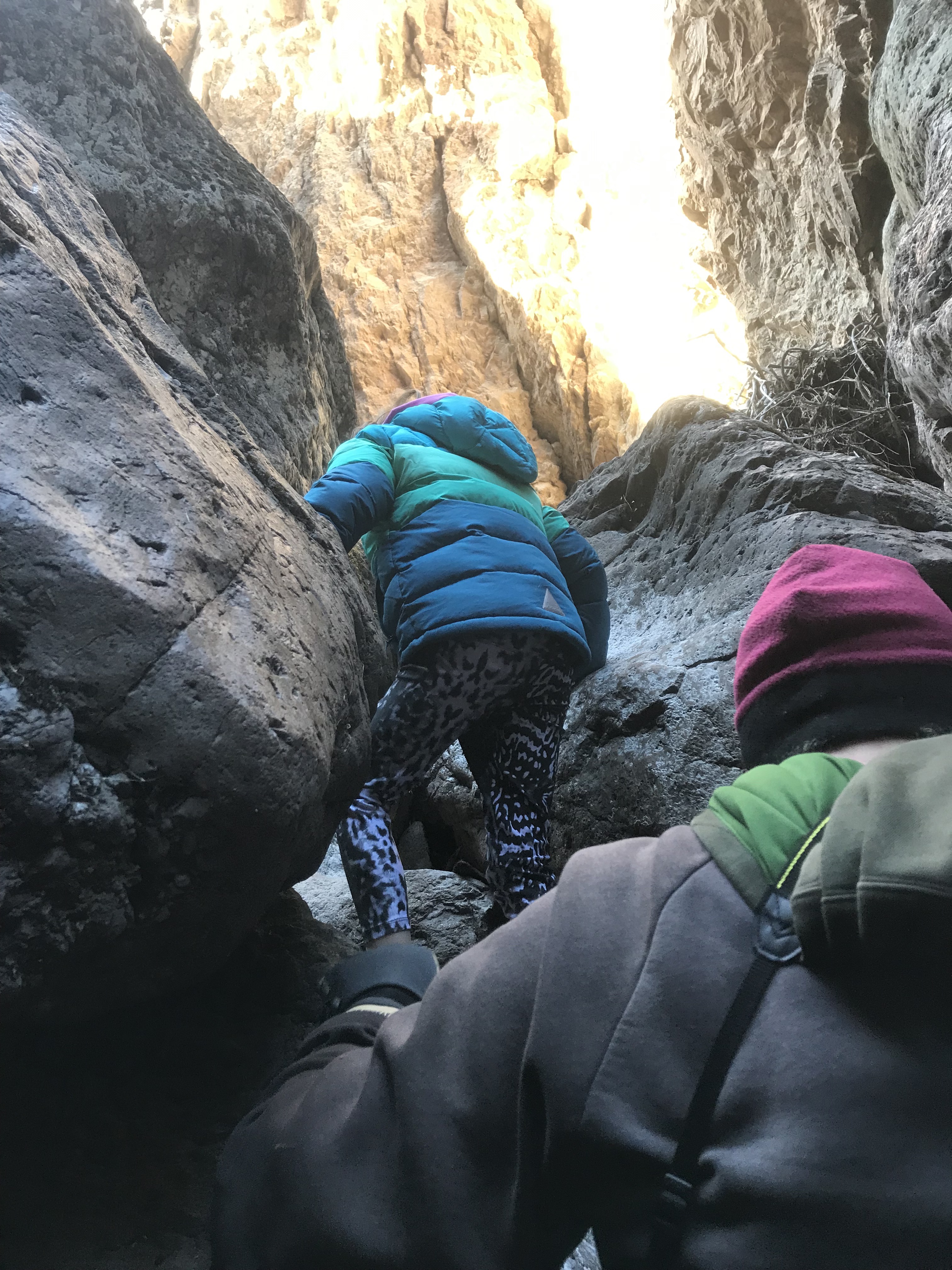 The hike was full of adventures – small dark tunnels to crawls through, big rocks to climb up, cross country cutting through sagebrush (the smells were divine), and some scrambles across rock faces.