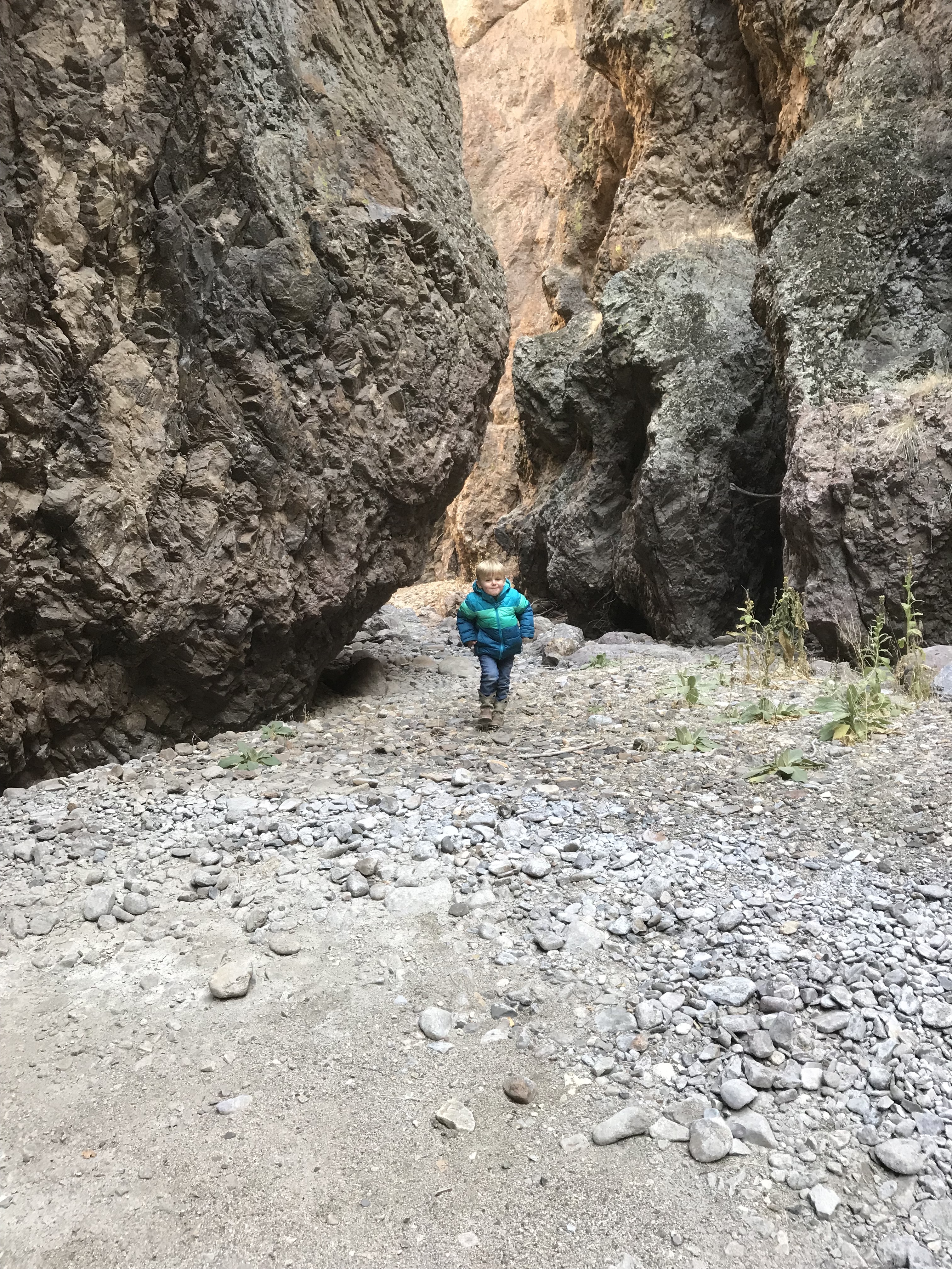 While still a difficult hike for Garden Girl and Sunshine Boy, it was less technical because we were there very late in the season and the creek was dry. The hike is definitely back country with no trails, mostly taking place in the creek bed, up rocks and boulders that would normally be under running water. We ended up hiking the whole hike (we did not make the loop, but did it as an out and back). Sunshine boy hiked part of it himself and part on my back. Garden Girl did the whole thing herself with no issues.